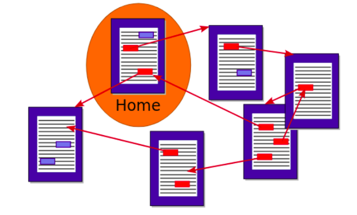 وبهذا نتخيَّل الشبكة ملفات مربوطة ببعضها عن طريق العناوين الموحدة:
