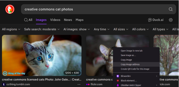 />`جرب: انسخ هذا النص في ملف demo-img-tag.html -مثلاً- ثم افتح الملف بالمتصفح وسترى الصورة تظهر حيث وضعتها. وجرب أن تنسخ رابط صورة أخرى (Copy image address) من الشبكة وتضعه مكان هذا الرابط لترى النتيجة:
