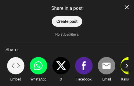 </iframe>وطريقة الوصول إلى مثل هذا النص في اليوتيوب مثلاً: الضغط على زر المشاركة ثم تجد الخيار Embed في الجهة اليسرى من هذه الصورة: