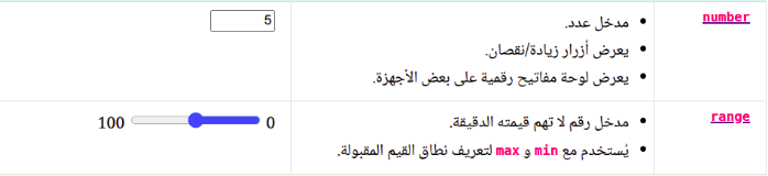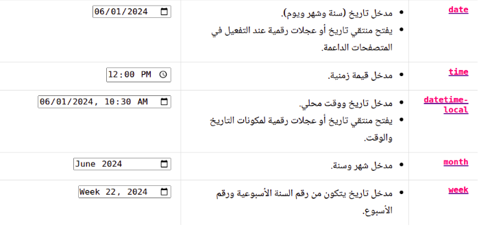راجع أنواع الإدخال في صفحة عنصر الإدخال.